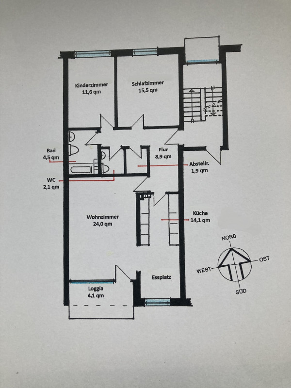 Wohnfläche: 86,2 qm / zzgl. 1 Kellerabstellraum 12,2 qm (mit Fenster) / zzgl. 1 PKW-Stellplatz